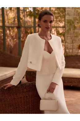 Objevte dokonalou kombinaci elegance a pohodlí s naším svatebním sakem E-498. Toto sako, vyrobené z vysoce kvalitního strečového krepu, je navrženo tak, aby splnilo všechny vaše představy o ideálním svatebním outfitu. Jeho dlouhé rukávy a otevřený výstřih vytvářejí moderní a ženský vzhled, který si zamilujete na první pohled.