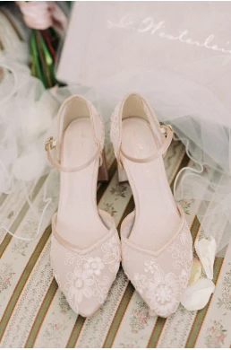 Marisol je skutočne špeciálna, ručne vyrábaná svadobná obuv vyrobená z priehľadnej čipky. Tento štýl má krásny nahý tón, preto túto obuv vrelo odporúčame aj pre družičky a mamičky nevesty. Predný aj zadný diel zdobí romantický kvetinový vzor. Stredná výška podpätku a módny blokový podpätok poskytujú celodenné pohodlie. Vďaka koženej stielke, gélovej výplni a špongiovej zadnej časti je tento štýl nielen krásny, ale aj veľmi pohodlný. Nastaviteľný popruh poskytuje extra stabilitu.