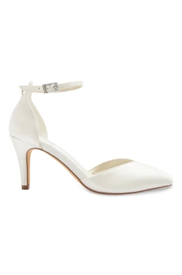 Svatební boty Marielle jsou elegantní, ručně vyrobené saténové boty pro nevěsty, které chtějí vypadat luxusně a zároveň zvládnout celý svatební den bez přezouvání. Čistý, moderní design v slonovinovém saténu se snadno kombinuje s různými styly svatebních šatů. Nastavitelný třpytivý řemínek lze nosit dvěma způsoby, v balení je také náhradní saténový řemínek pro jednoduchou změnu vzhledu. Stabilní podpatek s výškou 7,8 cm poskytuje eleganci bez ztráty jistoty při chůzi. Měkká gelová stélka, kožená a polstrovaná podšívka spolu s měkkou patou zajišťují výjimečný komfort i při celodenním nošení.