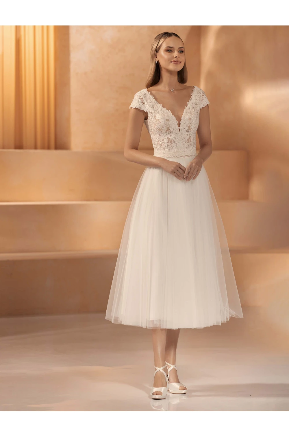 Svatební sukně IDA představuje dokonalou kombinaci moderního designu a romantického stylu, která osloví každou nevěstu toužící po výjimečném vzhledu ve svůj velký den. Vyrobená z čistého třpytivého tylu, tato sukně se pyšní jemným leskem, který dodává outfitu na eleganci a vzdušnosti. Její krátká délka zajišťuje, že nohy nevěsty budou krásně zvýrazněny, což dodává celkovému vzhledu hravý a svěží nádech.