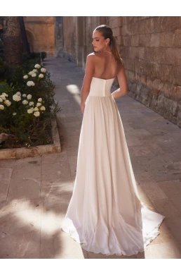 Svatební sukně Mirabela má přirozený pas, který krásně zvýrazňuje siluetu postavy a dodává jí ženský vzhled. Široká šlepěj, která je součástí designu, přispívá k romantickému a majestátnímu dojmu. Tento detail je perfektní pro nevěsty, které chtějí zapůsobit při každém kroku a zároveň se cítit pohodlně.