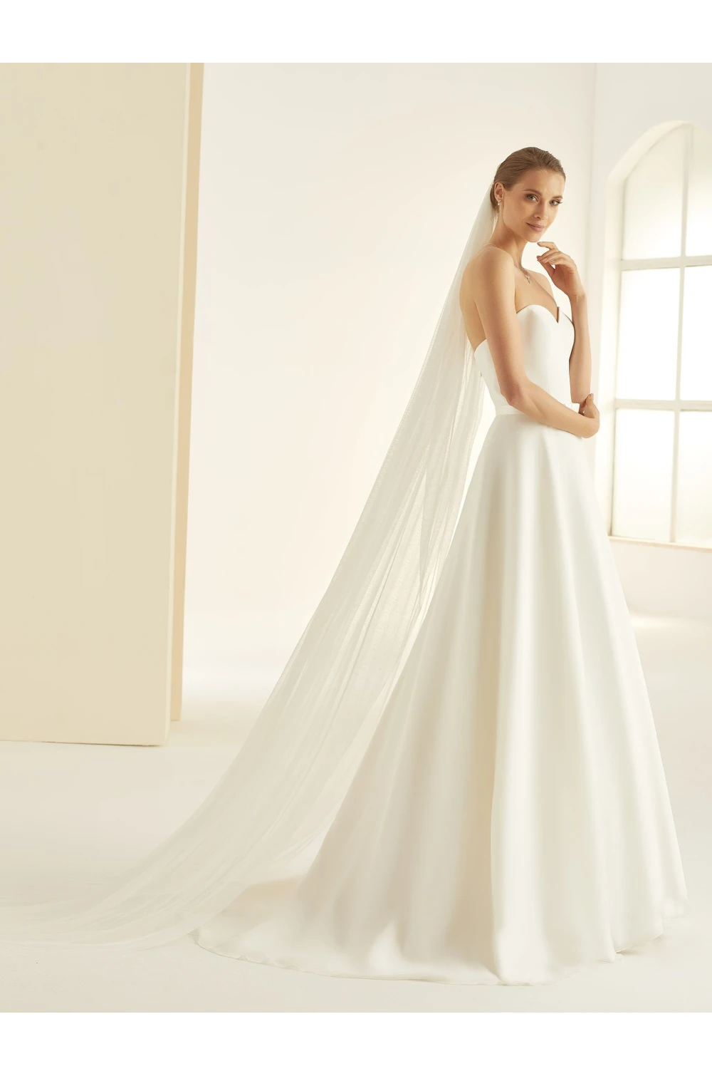Vyroben z jemného třpytivého tylu, tento závoj se vyznačuje lehkostí a vzdušností, což znamená, že se skvěle hodí pro jakýkoliv styl svatby, ať už se jedná o tradiční obřad, nebo moderní oslavu. Jeho oříznutý okraj dodává závoji sofistikovaný vzhled, který se snadno kombinuje s různými svatebními šaty. Barva ivory je klasická a nadčasová, čímž se snadno přizpůsobí každému tónu pleti a stylu šatů.