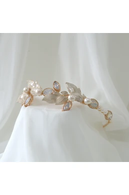 Boho-Hochzeitskrone in Goldfarbe mit Steinen und Perlen.