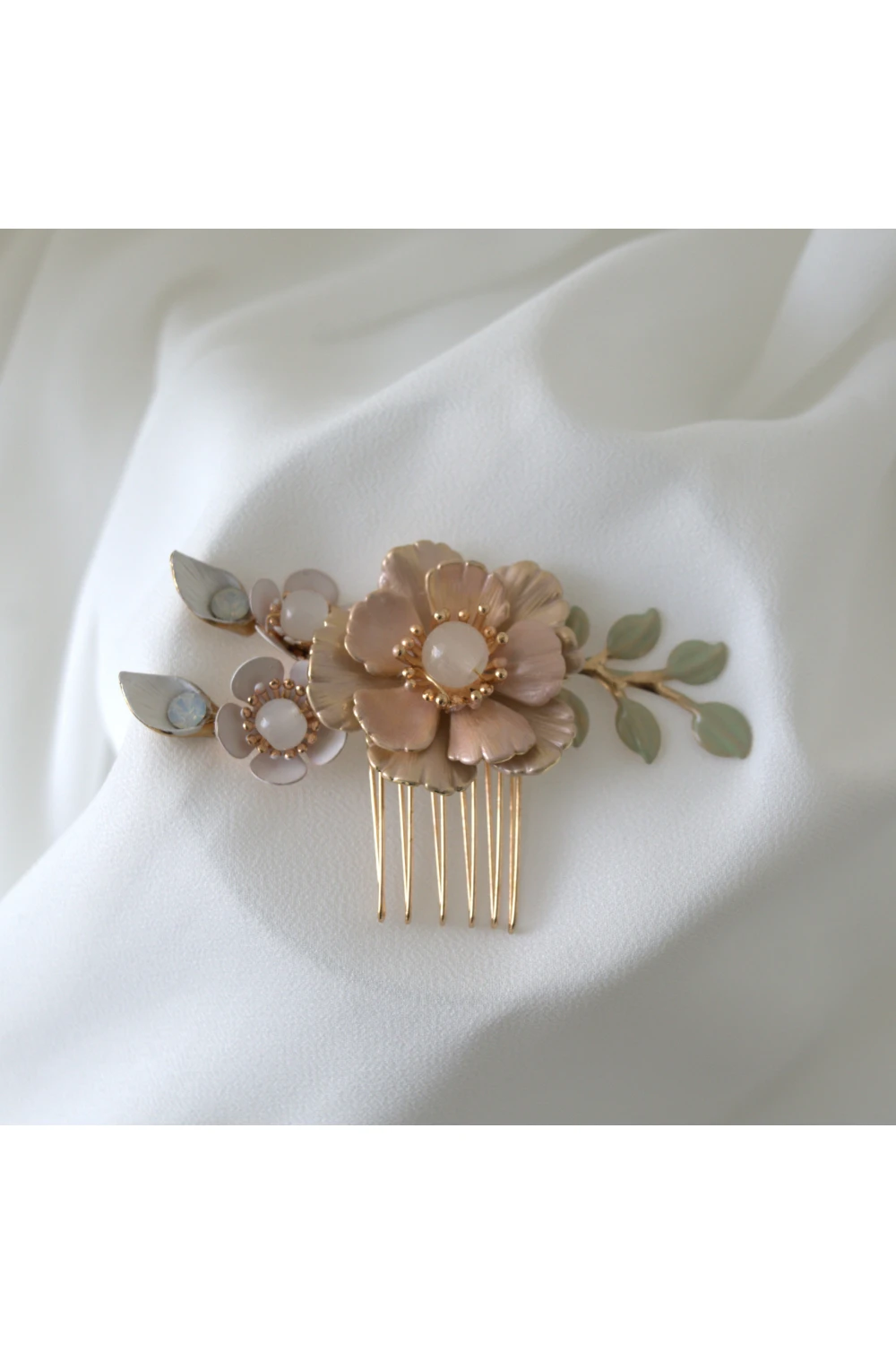 Der Hrebeník hat eine universelle Größe und eignet sich für alle Frisurenarten. Er kann an verschiedenen Stellen des Haars positioniert werden – am Seitenteil, hinten oder oben an der Hochsteckfrisur. Sein einzigartiger Look zieht sofort Aufmerksamkeit auf sich und verleiht Ihrem Hochzeitslook die perfekte Note von Eleganz und Weiblichkeit.