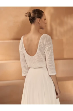 Der Hochzeitsstrickpullover E-435 lässt sich mit verschiedenen Brautkleidern, Röcken oder Hosen kombinieren und so einen einzigartigen und unvergesslichen Look schaffen. Es spielt keine Rolle, ob Sie eine Zeremonie im Freien oder in einem eleganten Saal planen; dieses Modell ist das ideale Accessoire, das Ihr Brautkleid ergänzt und betont.
