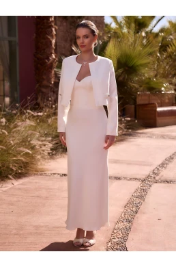 Dieses elegante Hochzeits-Sakko E-498 mit langen Ärmeln besteht aus hochwertigem Stretchcrepe, der eine perfekte Passform und Tragekomfort garantiert. Ein offener Ausschnitt verleiht dem Modell einen modernen und femininen Charakter, wodurch es zur idealen Wahl für eine standesamtliche Hochzeit oder ein elegantes Hochzeits-Outfit wird. Dank seines minimalistischen Designs lässt es sich leicht mit verschiedenen Hochzeitskleidern oder Oberteilen kombinieren und wirkt stilvoll und zeitlos.