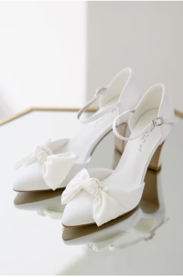 Die Brautschuhe Olivia verkörpern die neuesten Trends. Die Vorderseite wird von einer eleganten Satinschleife geschmückt. Die Brautschuhe Olivia sind ein exklusives, handgefertigtes Modell. Weiches Gel-Polster und eine Leder-Einlegesohle sorgen für maximalen Komfort. Dieses elegante Schuhwerk ist die richtige Wahl für Bräute, die wirklich trendige und besondere Modelle suchen.