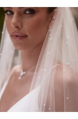 Dieser wunderbare einlagiger Brautschleier ist die Verkörperung von Eleganz und zarter Schönheit. Das Modell S-525 ist aus weichem Tüll gefertigt und hat eine Länge von 200 cm, was einen bequemen Tragekomfort und ein beeindruckendes Erscheinungsbild garantiert. Sein feiner Schnitt ist am gesamten Rand mit 230 Perlen verziert, die ihm einen luxuriösen und romantischen Hauch verleihen. Außerdem ist ein vormontierter Kamm im Lieferumfang enthalten, der eine einfache und zuverlässige Befestigung im Haar ermöglicht.