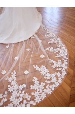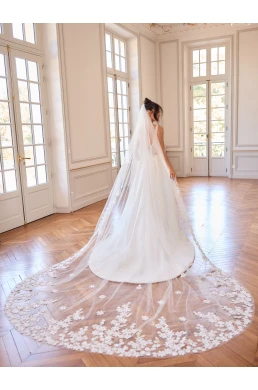 Dieser luxuriöse einlagige Brautschleier ist aus reinem, weichem Tüll gefertigt und verleiht dem Brautlook Zartheit und moderne Eleganz. Modell S-550 hat eine Länge von 350 cm und ist mit romantischen 3D-Blüten verziert, die das gesamte Outfit eindrucksvoll hervorheben. Der feine Schnitt wird durch eine Spitzenkante ergänzt, die dem Schleier einen schicken und zeitlosen Charakter verleiht. Zum Lieferumfang gehört auch ein befestigter Haarkamm, der einen bequemen und zuverlässigen Halt beim Tragen gewährleistet.