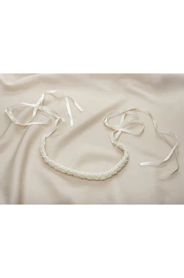 The beautiful wedding belt WS-J242 is an elegant accessory that will enhance the beauty of any wedding dress. It is adorned with delicate pearls, giving it a romantic and timeless look. The dimensions of the belt are 42 cm x 2 cm, making it subtle yet significantly accentuating the waist and adding a touch of flair to the outfit.