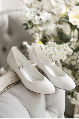 Maximally comfortable wedding shoes. Flora are vintage, all-lace wedding shoes, a true classic. This model meets all the characteristics that make it rightfully popular with brides: the stable heel is very comfortable, the strap keeps the foot stable, the smooth almond toe and delicate lace correspond to the latest fashion. The gel insole, cushioned lining, and leather insole provide exclusive comfort. The shoes are also suitable for wider feet.