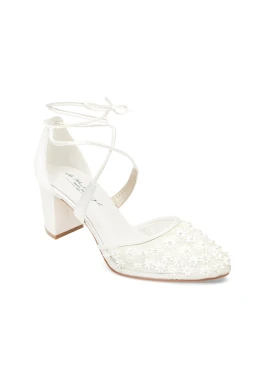 Johanna wedding shoes are a very special and trendy handmade model of wedding shoes. The long strap and floral motifs decorated with tiny pearls highlight their uniqueness. The design represents the latest trends.