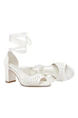 Esther wedding shoes are uniquely stylish and comfortable satin sandals adorned with pearls, designed to complement a modern wedding look without compromising on comfort. Their design reflects the latest trends while offering classic elegance suitable for lace and romantic dresses. With a stable 7.5 cm heel and adjustable strap, they securely hold the foot, while the soft gel insole, leather lining, and padded heel ensure comfort throughout the wedding day.