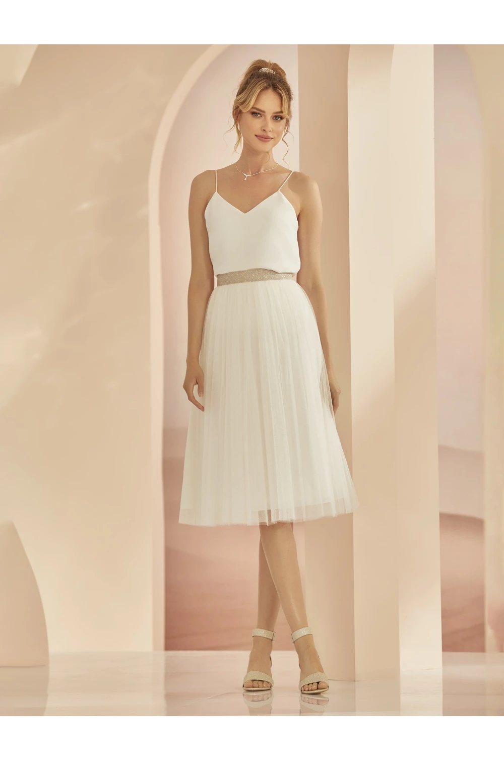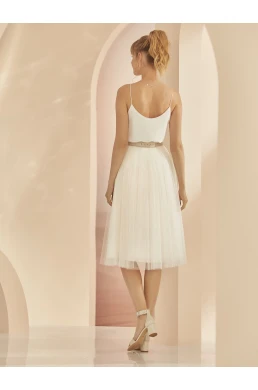 The Wedding Skirt Ravenna is not just a piece of clothing; it is a statement of sophistication and playful charm, perfect for the modern bride. Crafted from high-quality tulle, this short skirt elegantly dances with every movement, offering a unique blend of comfort and style that will make you feel confident on your special day.