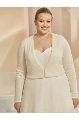 Il cardigan da sposa E-317 è realizzato con materiali di alta qualità che garantiscono comfort e lunga durata. La lunghezza del cardigan fino in vita crea una silhouette elegante, adatta a diversi tipi di abiti da sposa. Il bottone di chiusura non è solo pratico, ma anche molto elegante, conferendo al look complessivo un tocco raffinato.