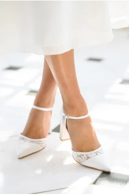 Scarpe da sposa estremamente comode. Le scarpe da sposa Emilia rappresentano le ultime tendenze. Grazie al design e al pizzo trasparente, si tratta davvero di una scarpa moderna. Stile speciale di scarpe da sposa artigianali con rivestimento in pizzo parzialmente trasparente. I tacchi a blocco offrono un comfort celestiale. Fodera in gel morbida, plantare in pelle e fodera imbottita garantiscono una calzata comoda.