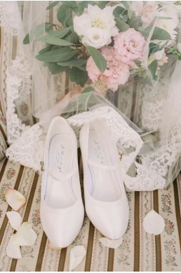 Scarpe da sposa estremamente comode. Le scarpe Sarah sono classiche ed eleganti, esclusive scarpe da sposa in raso realizzate a mano. L'altezza media del tacco offre comfort e stabilità. La scarpa è realizzata con suola interna in pelle, soletta in gel e fodera confortevole. La parte posteriore della scarpa è anche ammortizzata da un morbido riempimento. La scarpa ha una cinghia regolabile.