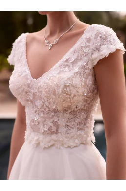 - Dettagli unici: la scollatura a V e le maniche a farfalla conferiscono al top da sposa uno stile unico.