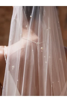 Questo elegante velo da sposa a un solo strato è progettato per valorizzare la bellezza e il fascino del giorno delle nozze. Il modello S-526 è realizzato con tulle morbido e ha una lunghezza di 110 cm, che garantisce una vestibilità confortevole. Il taglio delicato è evidenziato da 95 splendide perle, che conferiscono al velo un aspetto lussuoso e romantico. Include anche un pettine già predisposto, che permette un fissaggio semplice e sicuro all'acconciatura.