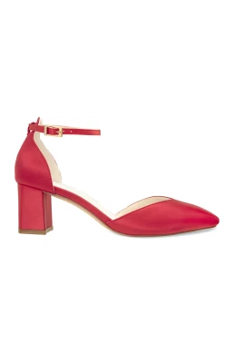 Ruby predstavujú spojenie elegancie, luxusu a moderného dizajnu. Tieto ručne vyrábané exkluzívne saténové topánky v nádhernej červenej farbe sú stelesnením ženskosti a sebavedomia. Ich čistý, minimalistický vzhľad dopĺňa jemný nastaviteľný remienok, ktorý zaručuje dokonalé a bezpečné uchytenie.