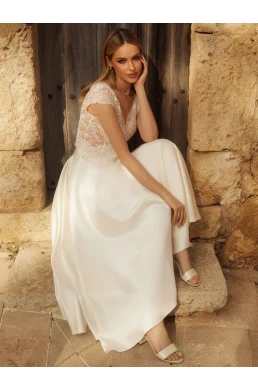Svadobná sukňa ROMANA je skutočným skvostom, ktorý osloví každú nevestu hľadajúcu dokonalý outfit na svoj veľký deň. Navrhnutá v áčkovom strihu, táto sukňa ponúka kombináciu elegancie a pohodlia, čo je pre svadobné šaty nevyhnutné. Kvalitný krep, z ktorého je sukňa vyrobená, sa jemne prispôsobí vašim krivkám a dodáva vám pocit luxusu.