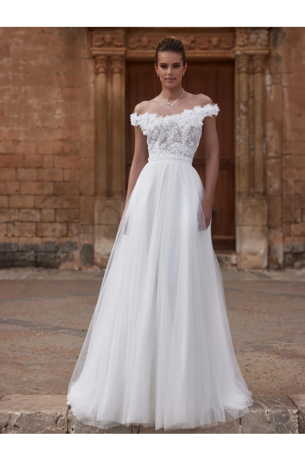 Svadobná sukňa SEPHORA je úžasný model áčkového strihu, ktorý spája jemnosť a lesk v dokonalej harmónii. Je vyrobená z vrstvy mäkkého tylu a vrstvy trblietavého tylu, podšitá jemnou podšívkou pre maximálne pohodlie. Sukňa má prirodzený pás, ktorý krásne zvýrazňuje siluetu, a dlhú vlečku, ktorá dodáva outfitu éterický a elegantný charakter. SEPHORA je ideálnou voľbou pre nevesty, ktoré chcú pôsobiť romanticky, no zároveň žiarivo vo svoj veľký deň.