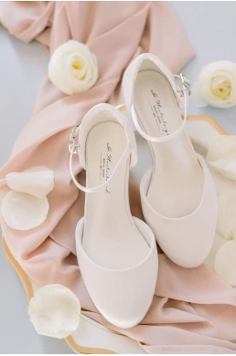 Maximálne pohodlné svadobné topánky. Becca sú ručne vyrábané saténové svadobné topánky v slonovinovej farbe, ktoré predstavujú klasický štýl. Hrubší podpätok a stredná výška podpätku poskytujú pohodlie a stabilitu. Topánka je vyrobená s koženou vnútornou podrážkou, gélovou výstelkou a pohodlným vystielaním. Zadná časť topánky je tiež odpružená mäkkým vystlaním. Topánka má nastaviteľný popruh.