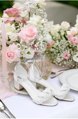 Svadobné topánky Ivy sú elegantné, ručne vyrábané exkluzívne svadobné sandále. Zapletený remienok s perleťovým efektom im dodáva jedinečný, módny vzhľad. Model Ivy predstavuje moderný a módny štýl, kde mäkká gélová výstelka a kožená stielka zaisťujú pohodlné nosenie.