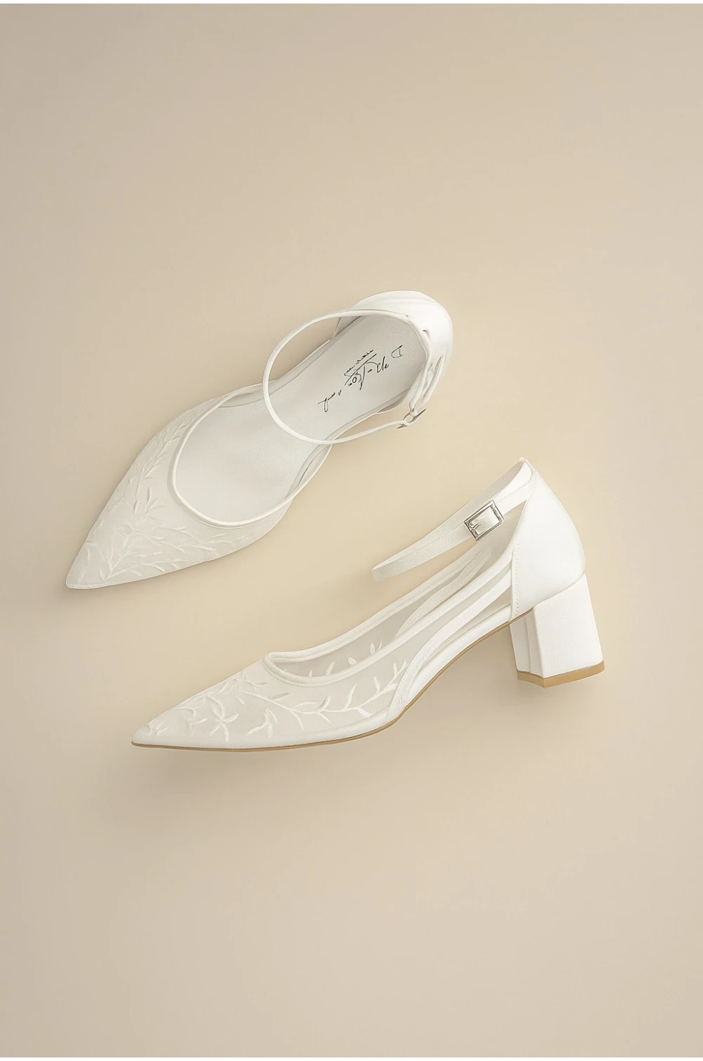 Topánky Daphne sú ručne vyrobené, exkluzívne svadobné topánky zdobené iluzórnou čipkou. Je to upravená verzia najpredávanejšieho modelu Tamara, ale Daphne sú s nižším podpätkom. Svadobné topánky Daphne sú skutočne jedinečné vďaka špeciálnemu priehľadnému tylovému materiálu a kvetinovej čipkovanej výzdobe. Vďaka koženej stielke a gélovej výplni ponúka optimálne a mimoriadne pohodlné nosenie. Nastaviteľný remienok poskytuje stabilitu, zatiaľ čo blokový podpätok zaisťuje maximálne pohodlie pre nevestu.