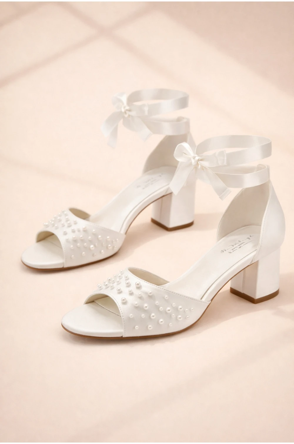 Svadobné topánky Esther sú jedinečne štýlové a zároveň pohodlné saténové sandále zdobené perlami, navrhnuté tak, aby doplnili modernú svadobnú vizáž bez kompromisov v komforte. Ich dizajn reflektuje najnovšie trendy a zároveň ponúka klasickú eleganciu vhodnú ku čipkovaným aj romantickým šatám. Vďaka stabilnému podpätku 7,5 cm a nastaviteľnému remienku pevne držia nohu, zatiaľ čo mäkká gélová stielka, kožená podšívka a polstrovaná päta zaisťujú pohodlie počas celého svadobného dňa.