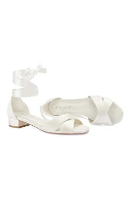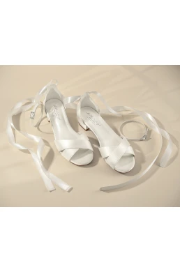 Maximálne pohodlné svadobné topánky. Topánky Judith sú elegantné a trendy ručne vyrobené svadobné sandále vyrobené z vysoko kvalitného saténu. Ich saténový remienok je ľahko nastaviteľný a bezpečne drží chodidlo na svojom mieste. Ako darček prikladáme v krabici ďalší saténový remienok, ktorý umožňuje štýlovať topánky rôznymi spôsobmi. Svadobné sandále Judith predstavujú čistý a módny štýl. Mäkká gélová stielka, kožená podšívka a polstrované vnútro a päta zaisťujú maximálne pohodlie.