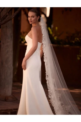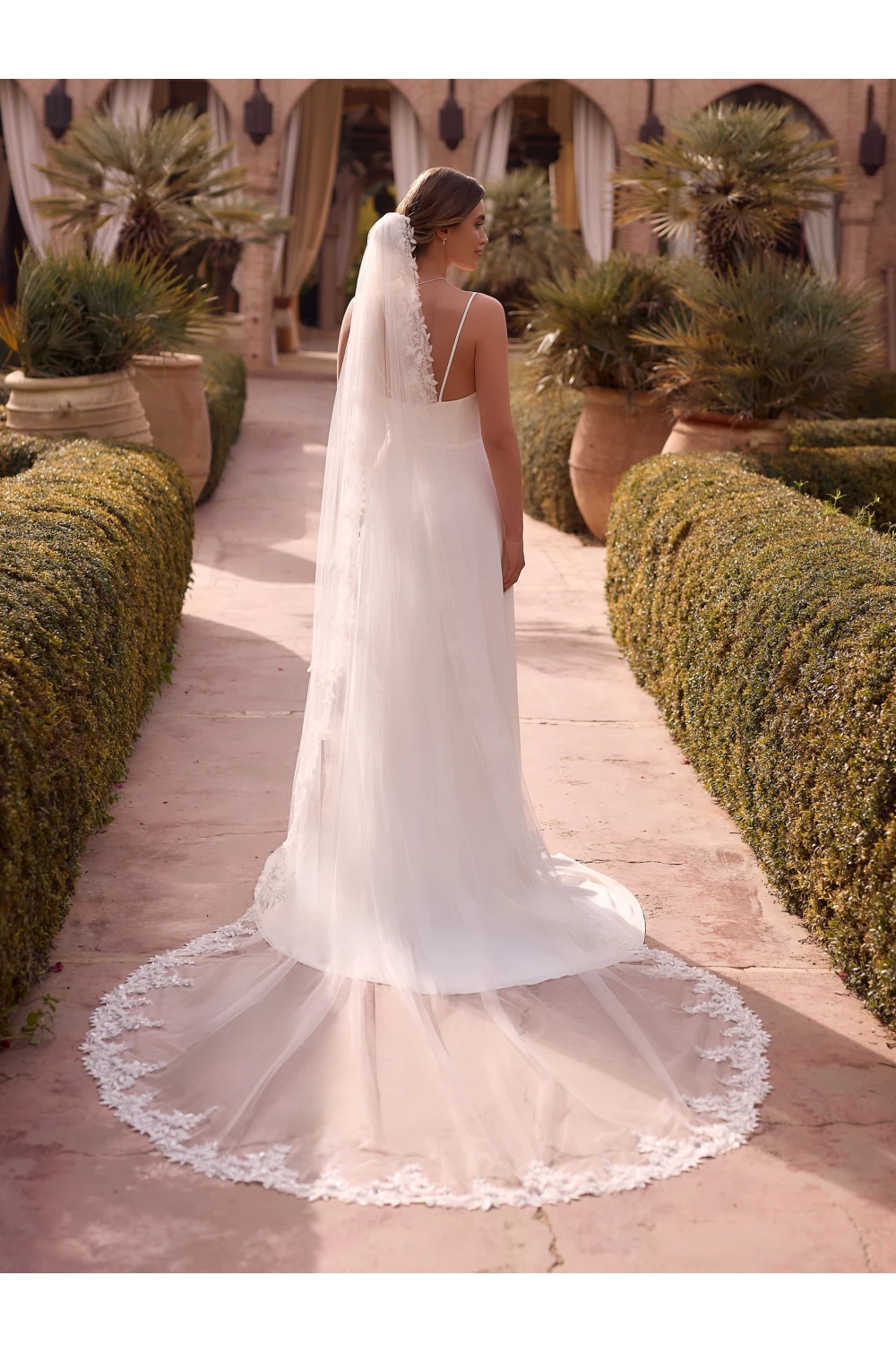 Tento nádherný jednovrstvový svadobný závoj je vyrobený z čistého mäkkého tylu a dodáva svadobnému outfitu romantickú eleganciu. Model S-541 má dĺžku 300 cm a je zdobený jemným čipkovaným lemom, ktorý zvýrazňuje jeho krásu a sofistikovaný charakter. Čipkovaný okraj pôsobí moderne a nadčasovo zároveň, čím robí zo závoja dokonalý doplnok k svadobným šatám. Súčasťou je aj pripevnený hrebeň, ktorý zaručuje pohodlné a bezpečné nosenie.
